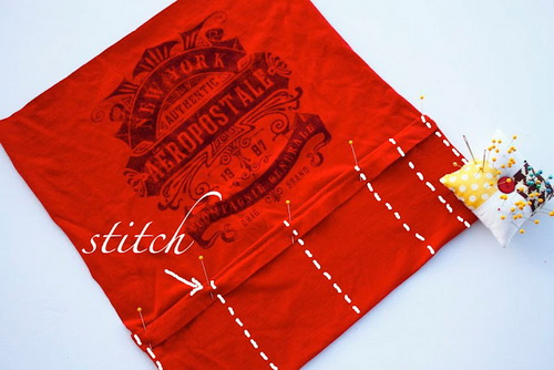 A pólót fordítsd ki, és a hónalj alatt vágd el. Csak az alsó részre lesz szükség!